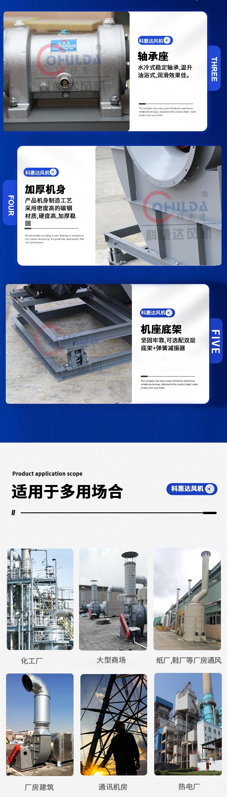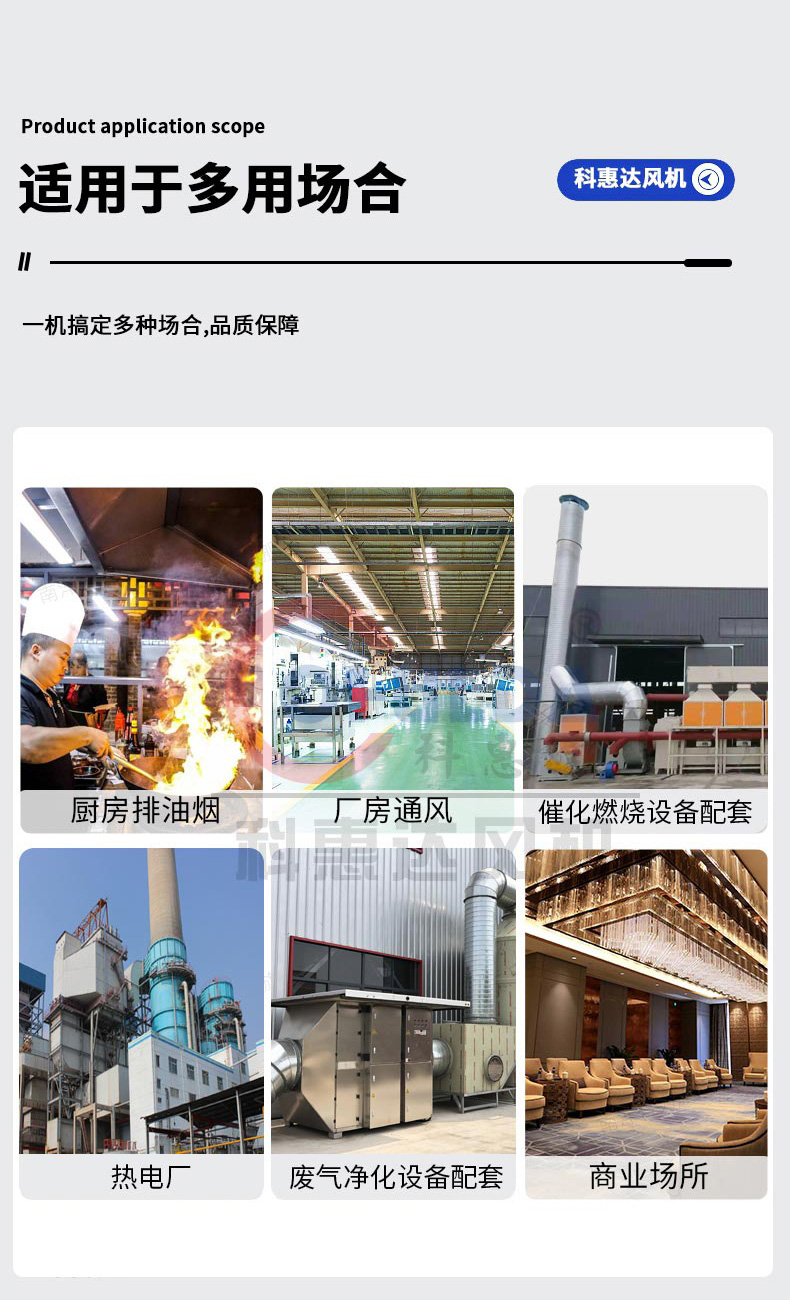 可作为环保净化设施、空气处理设施的配套设备;还可广泛用于大中型工厂、民用建筑、大型广场、发电厂等场所。