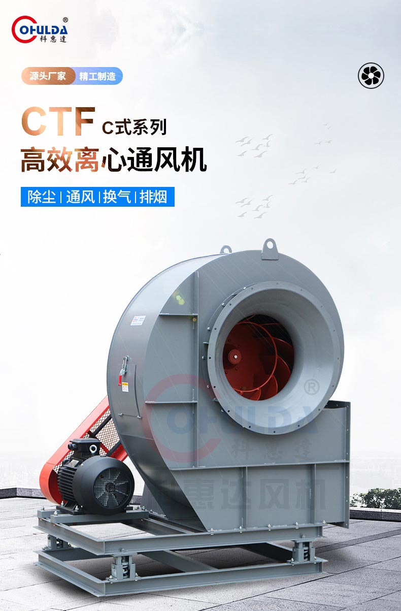 CTF-C式离心通风机是新开发出来的全新高效系列离心风机。该系列产品针对大气治理行业的使用需求设计,具备高效率的特点,有利于环保设备的整体能耗降低。能效指标达到1级能效标准。