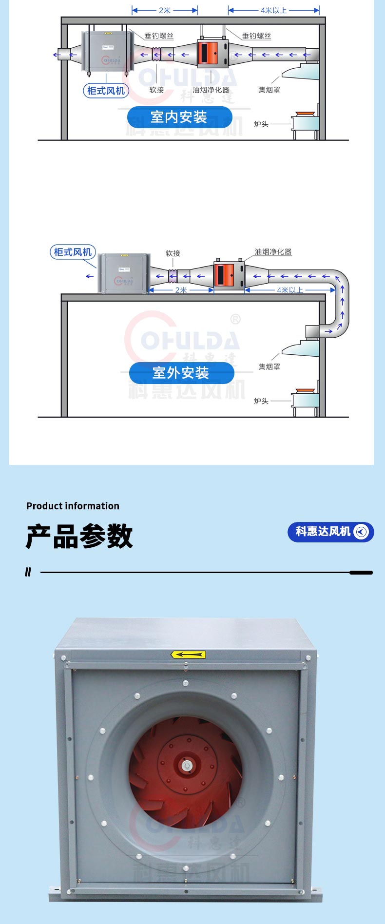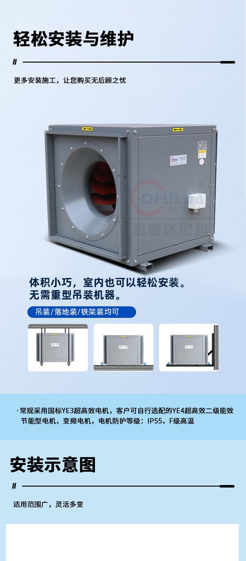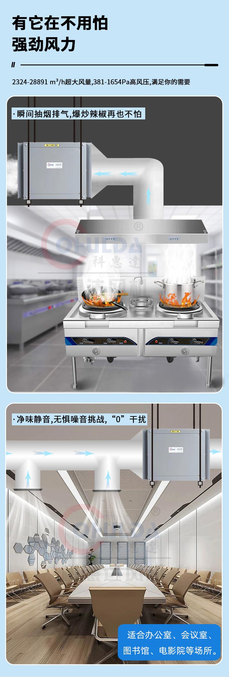 风机适用于输送的为清洁、不自燃、无腐蚀气体,空气中含尘量≤120mg/m3,温度在-20℃至85℃范围使用。适用于高级宾馆酒店、民用建筑、百货商场、歌舞厅、影剧院以及体育馆等场合的送、排风换气及配套消防工程使用。