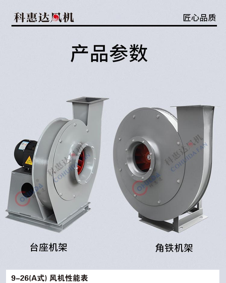 9-19、9-26系列离心风机可采用316不锈钢材质,用于输送腐蚀气体或高温气体≤500℃其性能与尺寸相同。