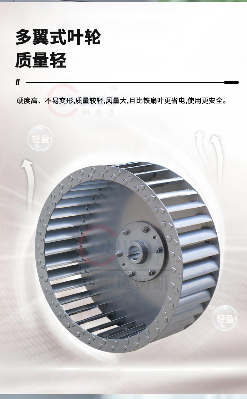 CF 系列多翼式离心风机是一款适应日益发展的净化工业及环保降噪的需要,厨房净化、宾馆酒楼通风换气配套的新型高效节能,低噪音中压风机。