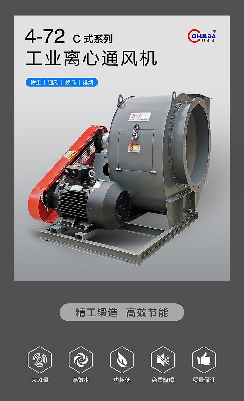 4-72-C式属中压大流离心通风机,相对于旧型风机具有较高效率、较低噪音、压力曲线平稳、使用范围广特点,主要用于厂矿企业、各类宾馆、酒楼集中空调系统气体输送、厨房排气以及地下室、影剧院、会议室、体育馆、商场等大型建筑的室内通风换气、降温除尘等用途,也可以与其他各类机械设备配套作气体循环使用。