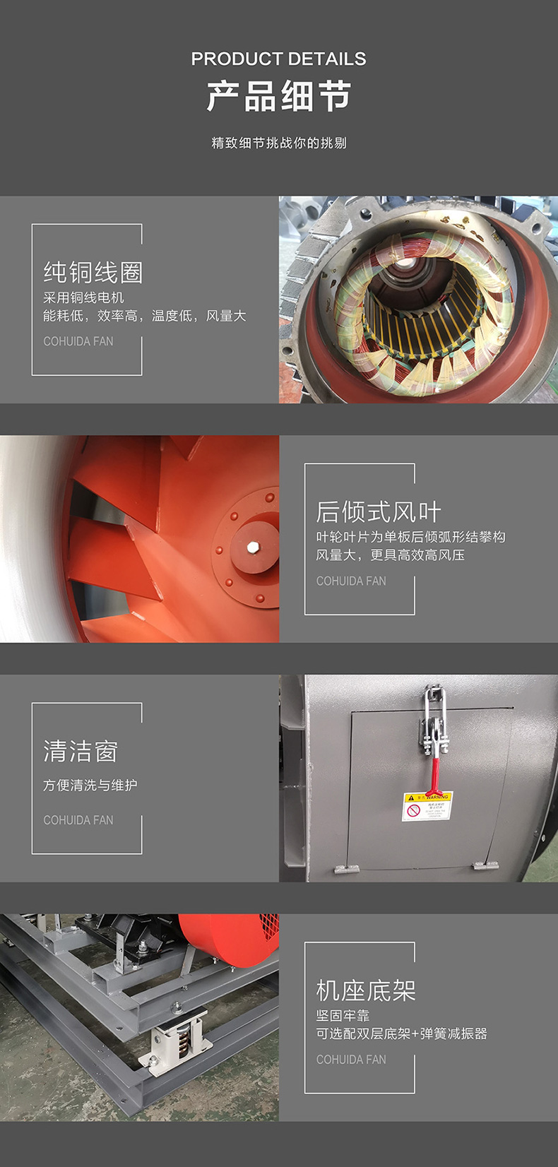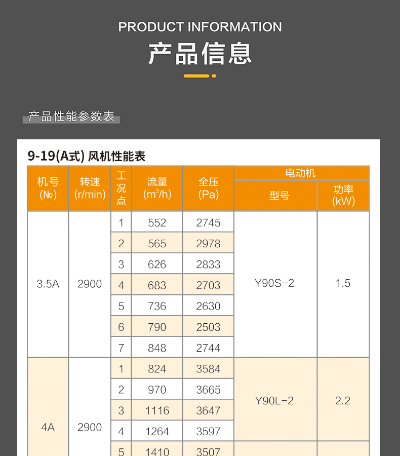 9-19、9-26系列离心风机可采用316不锈钢材质,用于输送腐蚀气体或高温气体≤500℃其性能与尺寸相同。