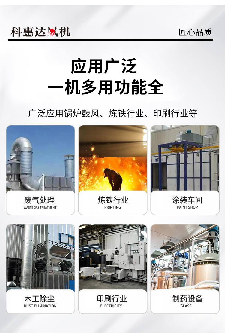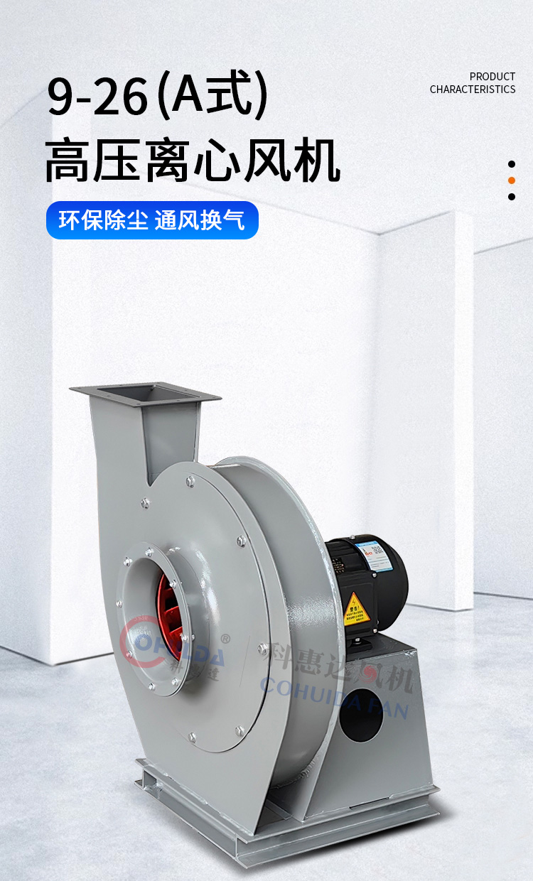 9-19、9-26系列离心风机均属于小流量、高压型工业离心风机,一般用于锻冶炉、玻璃、电镀、陶瓷、电池、无线电等行业高压强制通风,并可广泛用于粮食、饲料、矿粉等加工行业的物料输送。也适合用于纸箱机械设备、钢化玻璃设备等配套使用。输送的介质为空气和其它不自燃、对人体无害、无腐蚀性气体,气体内不允许有粘性物质,一般通风换气时使用温度不得超过80℃,所含的尘土几硬质颗粒物不大于≤150mg/m3。