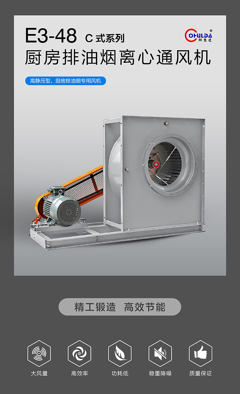 此系列风机是在CTF-(13-48)-A式风机的基础上开发的厨房排烟风机,采用C式皮带传动,可以通过改变带轮传动比来调节风机的性能参数。CTF-(13-48)系列离心通风机是针对大型商场等建筑物的通风换气,楼层过高,管道太长,弯头过多和厨房抽油烟的需求特点而开发设计的高静压型风机,该产品具有风量大、风压高、噪音小、安装方便快捷之优势,特别适合在管道阻力大的场合使用。如应用于低阻力管道系统则容易导致电机超负荷运行。