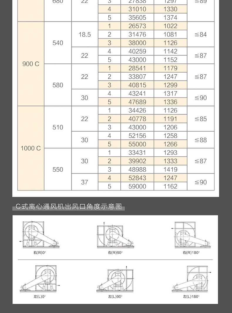 CTF-(13-48)-C式离心风机适用于输送非易燃易爆、无腐蚀的气体,气体温度不大于80℃,气体内所含尘土及硬质颗粒物不超150mg/m3。