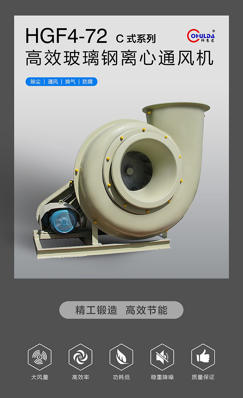 HGF4-72(C型)玻璃纤维离心风机采用聚酯玻璃纤维制成,具有高强度、轻量化设计、的耐腐蚀性能以及出色的耐用性——不仅能有效抵抗老化,还能保持低噪音水平。这使其成为一款理想的、技术的耐腐蚀风机。叶轮通过角皮带由电机驱动,轴承组件则可选水冷或油冷方式。这种设计有助于大限度地减少电机和齿轮箱部件的腐蚀,降低电机负载,从而显著延长风机的使用寿命。